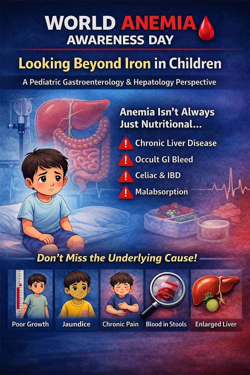 From a Pediatric Gastroenterology and Hepatology perspective, anemia in children is often a clue to chronic disease affecting the gut, liver, or nutrient absorption.
